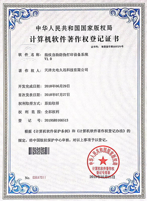指紋自助防偽打印設(shè)備系統(tǒng)